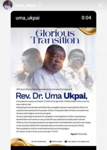 NIGERIA: Renowned Evangelist Uma Ukpai Passes Away At 80
